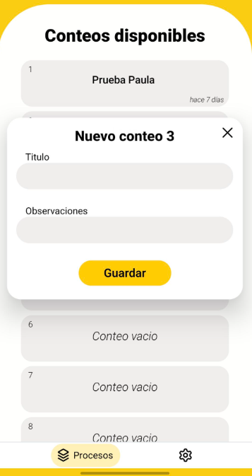Para crear un nuevo conteo, debe seleccionar uno de los archivos disponibles; el sistema le solicitará asignar un "Título" para iniciar el proceso.